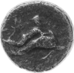 Melikertes lying on a dolphin, guiding it with his hands, right