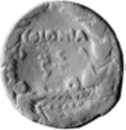 Metal analysis on coin L 1537 (= Chaves 166): Cu 85.50; Pb I0.25; Sn 2.26; Ag 0.110; Fe 0.020; Sb 0.700; Ni 0.020; As 0.520; Bi 0.021. On coin L 1538 (= Chaves 167): Cu 82.50; Pb 9.20; Sn 2.30; Ag 0.160; Fe 0.010; Sb 0.750; Ni 0.430; As 1.56; Bi 0.010. For more metal analyses, see Chaves, Numisma 150-5, 1978, 337-43.Countermarks: Monogram (cmk 79), see Chaves 168, 171 (twice), 187, 199-201, 256, 276, 303, 305–7, 359, 363, 367, 372, 375, 378, 386, 402, 419-21, 437, 469, 472-3, it is difficult in some cases to distinguish between cmk 79 and 44. NCAPR (cmk 57), see Chaves 412, 417.