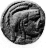 helmeted head of Athena Parthenos, right