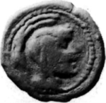 helmeted head of Athena Parthenos, right