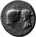 Person (obv.) Mark Antony (imperator) ; Octavia ; Octavian (imperator)