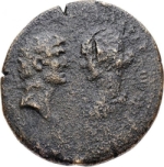 bare head of Antony, left, facing right; and bust of Octavia, right, facing left |