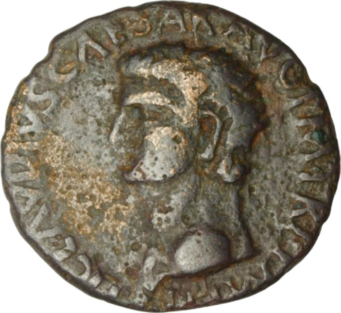 bare head of Claudius, left |