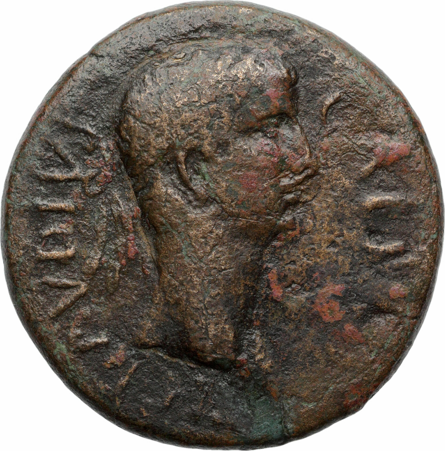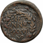 Formerly Y. Kolb coll. (SFN Procès-Verbaux de l'année 1942-1943, RN 1943, p. xxxiv: on Feb. 6 1943, M. le Dr Kolb fait circuler un bronze inédit de Sinope à l'effigie de Claude .I er , qui porte les légendes et les types suivants : TI CLAVDIVS CAESAR. Tête laurée à dr. /C•I•F•S. (Colonia Iulia Pelix Sinopa) ANNO .LXXXVII dans une couronne de chêne. |