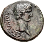 laureate head of Claudius, right