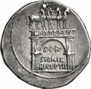 Emperor for the ninth time, with tribunician power for the fourth time, the senate and Roman people, with the standards recaptured |