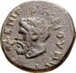 head of Zeus Ammon, left; in front, pentagram