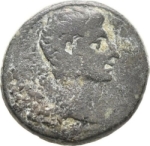 facing cult statue of Artemis Anaïtis; uncertain monogram