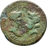 laureate head of Nero, right, facing laureate head of Zeus, left
