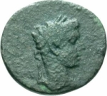 laureate head of Tiberius, right