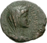veiled head of Agrippina I, right