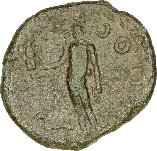Apollo Kissios standing facing, head left, holding bird and bow; to left, sheep