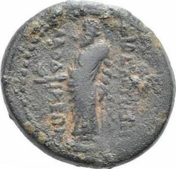 The monogram, which also occurs on Neronian coins of Aineias (2926–7), has been variously interpreted as standing for coronatus (Ramsay), ΚΟΡΝΗΛΙΟΣ (BMC) and ΑΡΧΟ (Wa) Κορ(νήλιος) is correct, as it is spelled out in full on coins of another Dioscurides (under Domitian: KM 266, nos 20–1, vA 3845).