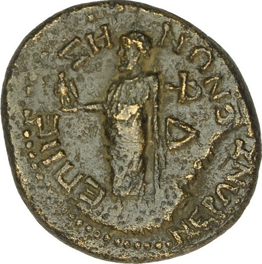 Most of what can be seen is a specimen of I, 2914. But the ΝΕΡΩΝ Σ[ ] visible of the reverse indicates that a (largely unsuccessful) attempt has been made to strike a specimen of 2923 over one of 2914. (The overtype seems likely to be 2923, rather than 2919 or 2936, since there is no break after ΝΕΡΩΝ).