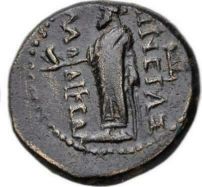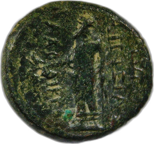 Zeus Laodiceus standing, left, with eagle and staff