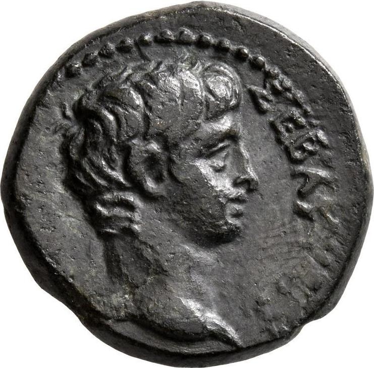 Apollo, standing left, with patera and double axe |