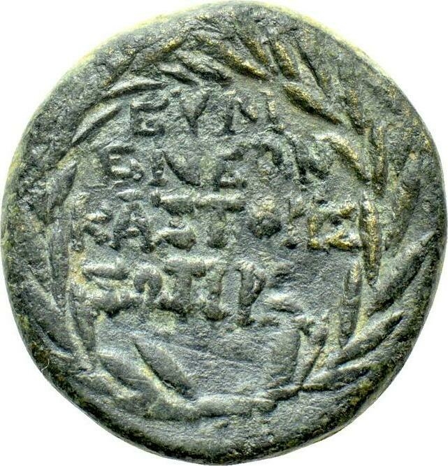 the reverse legend is in 5 lines, not 4 as usual: ΕΥΜ/ΕΝΕΩΝ / ΚΑΣΤΟΡΙΣ / ΣΩΤΙΡ/Α
