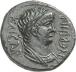 Athena advancing, left, with spear and pomegranate; on shoulder, shield; beside her, serpent