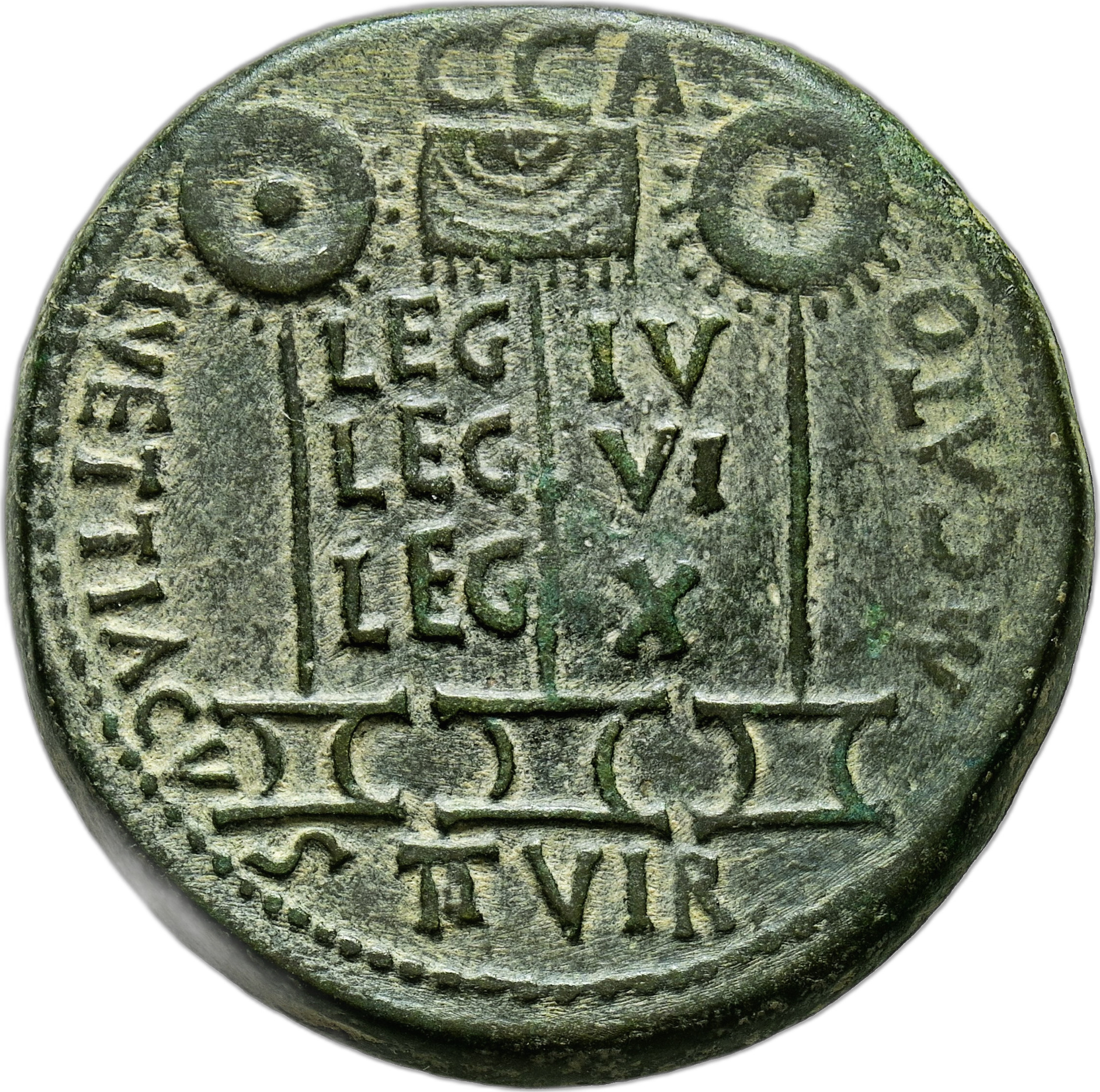 C C A M CATO L VETTIACVS IIVIR LEG IV LEG VI LEG X |