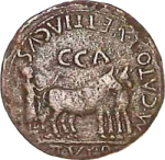 the colony of Caesaraugusta, under Marcus Cato (and) Lucius Vettiacus, duovirs