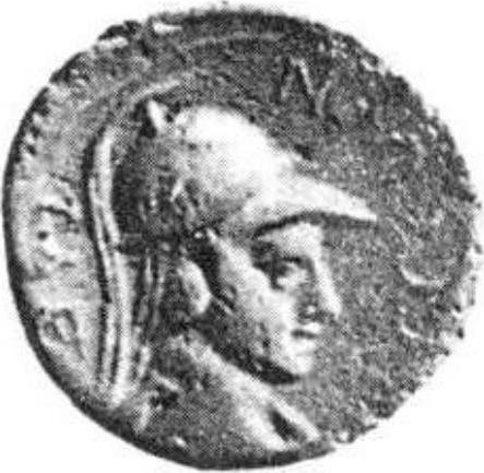 helmeted, draped and cuirassed bust of Lacedaemon, right, seen from front