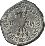 MVN AVGV[STA BILB] M SEMP TIBERI L LICI VARO II VIR