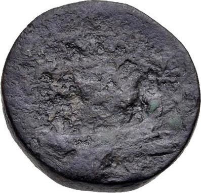 one ship under sail, to right; below head of Medusa (?)
