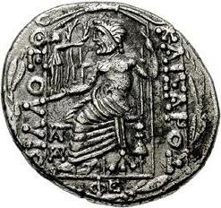 There is another example in NY, which may have different monograms (they are not very clear; also, the exergue is off flan); this coin also has ΥΠ and ΙΒ in reversed positions. It might be thought that, as the Zeus tetradrachms of Tiberius-Claudius are regarded in this catalogue as representing a different series/mint (4109-21), the Zeus tetradrachm of Augustus of 5 BC should be placed also in this separate series, especially as a newly discovered Zeus tetradrachm of Augustus, which dates probably to about 1 BC/AD (4108), is closely linked to the later Zeus tetradrachms by its reverse style. But this is not so. First, the obv. of the 5 BC tetradrachm is very close to that of the first Tyche tetradrachms. Secondly, the rev. of the 5 BC tetradrachm is very close to that of the posthumous Philips and very different from the Zeus of the later Zeus tetradrachms. Thus it seems that the 5 BC Zeus tetradrachm should be disassociated from the later Zeus tetradrachm series and attributed to Antioch, as a forerunner of the Tyche series.