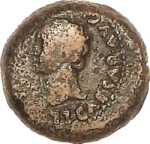 the portrait of Tiberius is radiate and legend goes anticlockwise