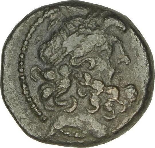 Tyche standing, left, holding rudder in right hand and cornucopia in left |
