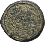 Zeus seated left, holding Nike and sceptre; date in exergue; above Zeus, thunderbolt; all in wreath (letters or symbols in fields) |