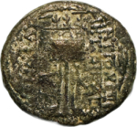 tripod from which arise three branches of laurel, within a laurel wreath