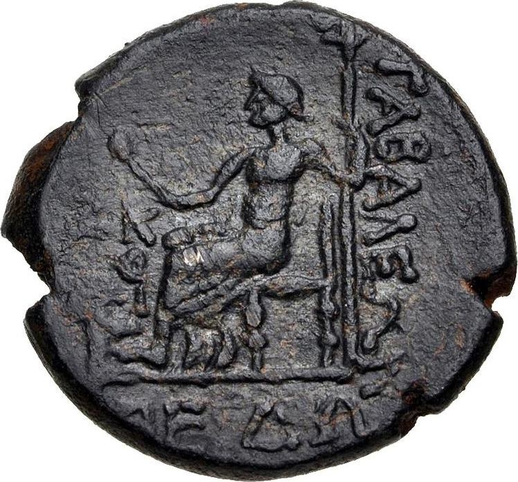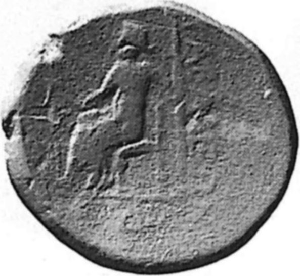 goddess seated, left, with poppy and long sceptre; before, sphinx |
