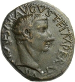 bare head of Tiberius, right |