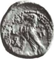 eagle with palm standing, left, on prow; monogram(s) |