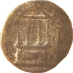 temple with four columns on pediment; free standing column on each side