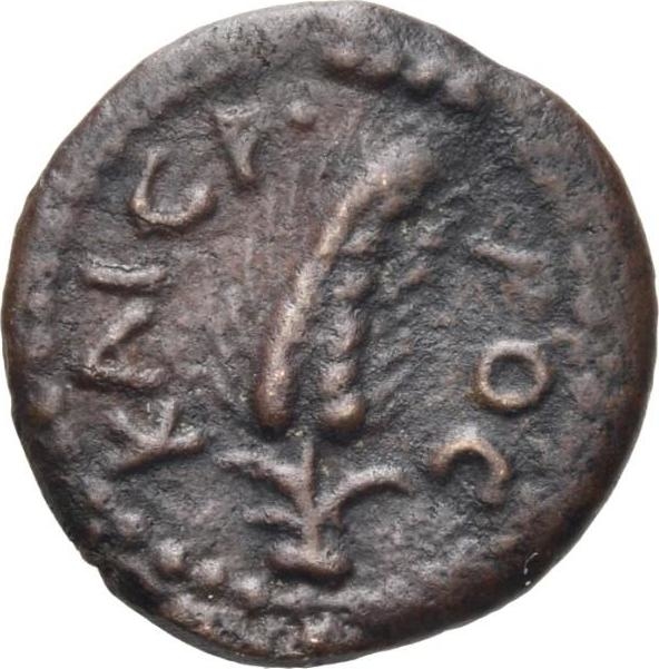 Date should be AD 6, not 6 BC. N. Kokkinos, ‘The prefects of Judaea 6-48 CE and coins from the Misty period 6-36 CE’, in D. M. Jacobson and N. Kokkinos (eds), Judaea and Rome in Coins (London, 2012), pp. 85-122, at 90-93, has discussed several candidates of coins of Augustus that might be dated to the year ΛΓ (33). If correctly read, the coins open up the question of the era used on the procuratorial coins.