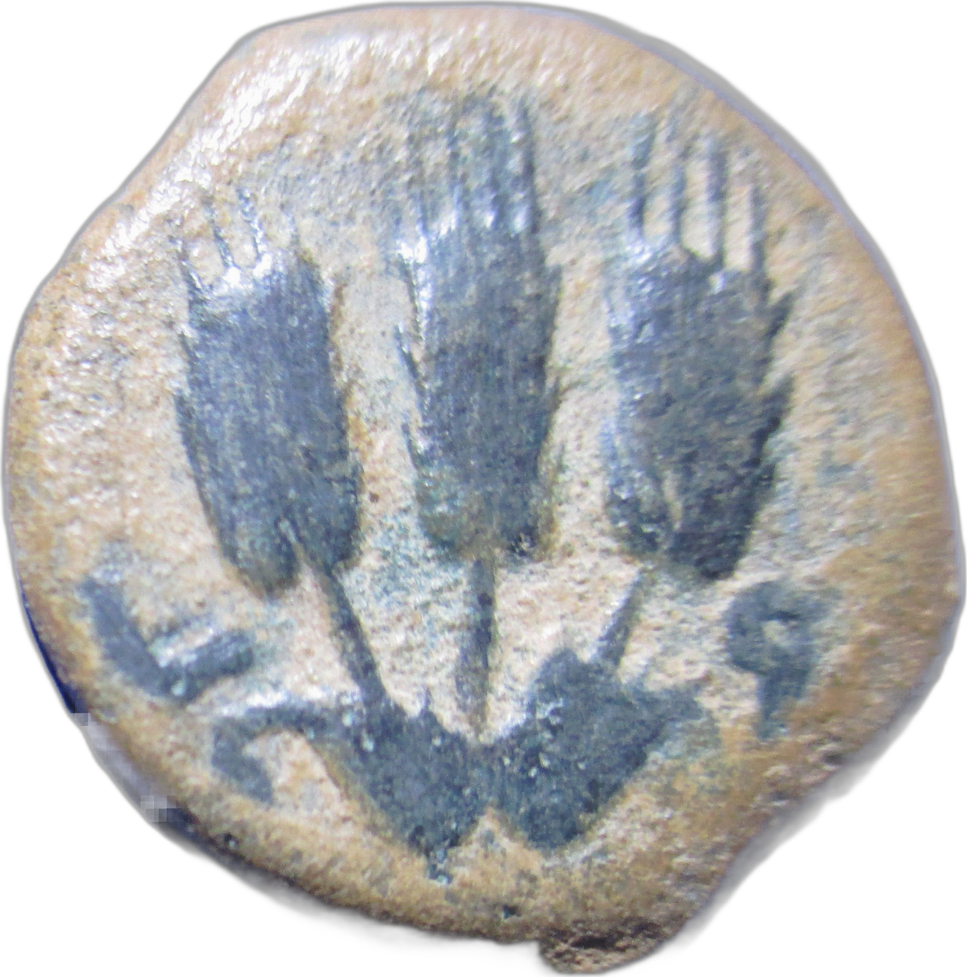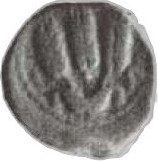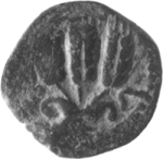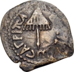 For overstrikes and variations in style, etc., see Meshorer 11a-j. .K. Lonnquist (A re-attribution of the King Herod Agrippa I ‘Year 6’ issue, Liber Annuus 47 (1997), pp. 429-440) has suggested a reattribution to Agrippa II and to Caesarea, but we still prefer Agrippa I and Jerusalem. This is not accepted by A. Kushnir-Stein, Some Observations on Palestinian Coins with a Bevelled Edge, INJ 14 (2000-2), pp. 78-83.