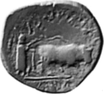 priest ploughing r.; PERMI CA[; qualitative metal analysis: bronze