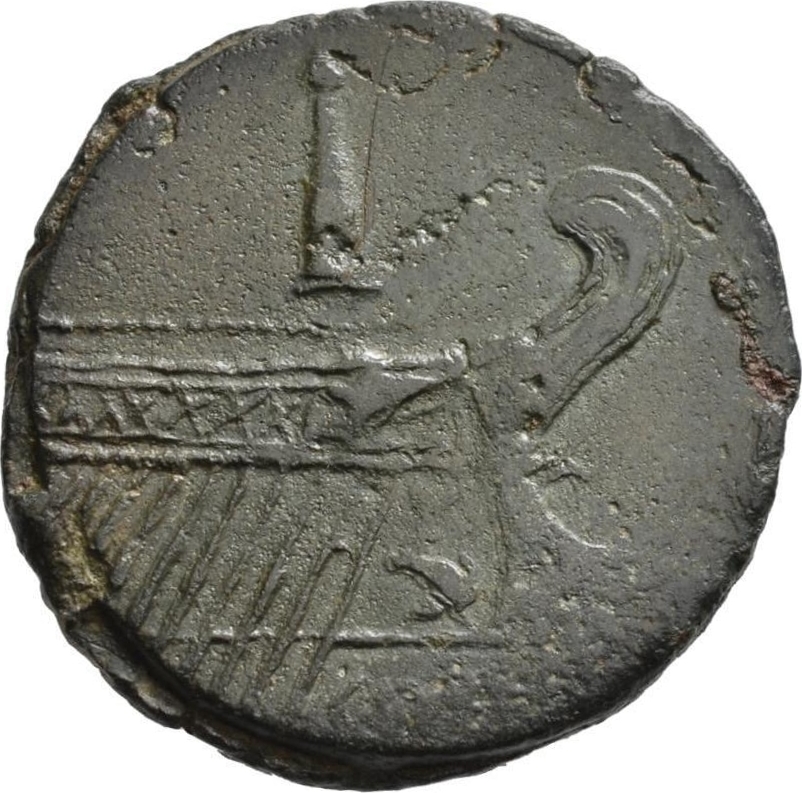 prow, with a dolphin; above, meta