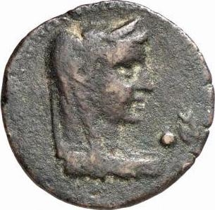 The coin is unlike coins of Thessalonica. Its large size and rev. type might suggest the influence of Rhodes. Presumably a legible specimen will one day be found. A broadly similar large coin depicting a veiled head was made at Patras, under Domitian (see p. 259).Neutron absorption analysis: Cu 82.97, Sn 4.53, Pb 14.41. Another clearer specimen is listed and illustrated in Mabbott 1715. This shows that the coin was made at Cnidus. The head on the obverse is of Demeter, with a poppy before; the reverse has the legends ΚΝIΔI[ΩΝ] and the magistrate’s name ΑΠΟΛΛΩΝIΟΣ. The Mabbott catalogue gives the date as 100BC; without a fuller study of the coins of Cnidus, the only way of dating would still seem to be the analogy of fabric with coins of Rhodes, of the first centuries BC and AD; see now D. Salzmann, ‘Unedierte Bronzen aus Knidos’, SM 172 (1993), pp. 85-7.