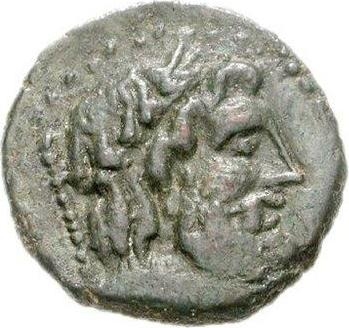 laureate head of Zeus, right; behind sceptre