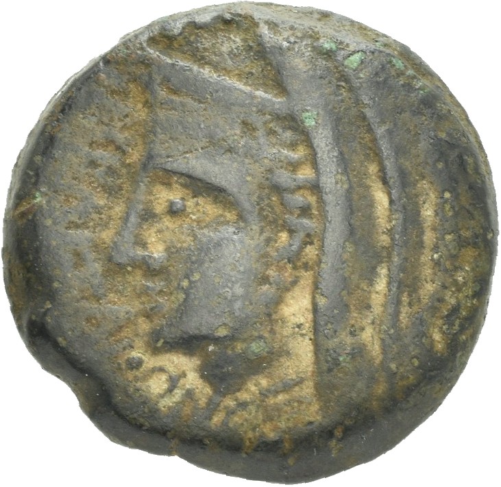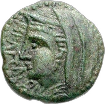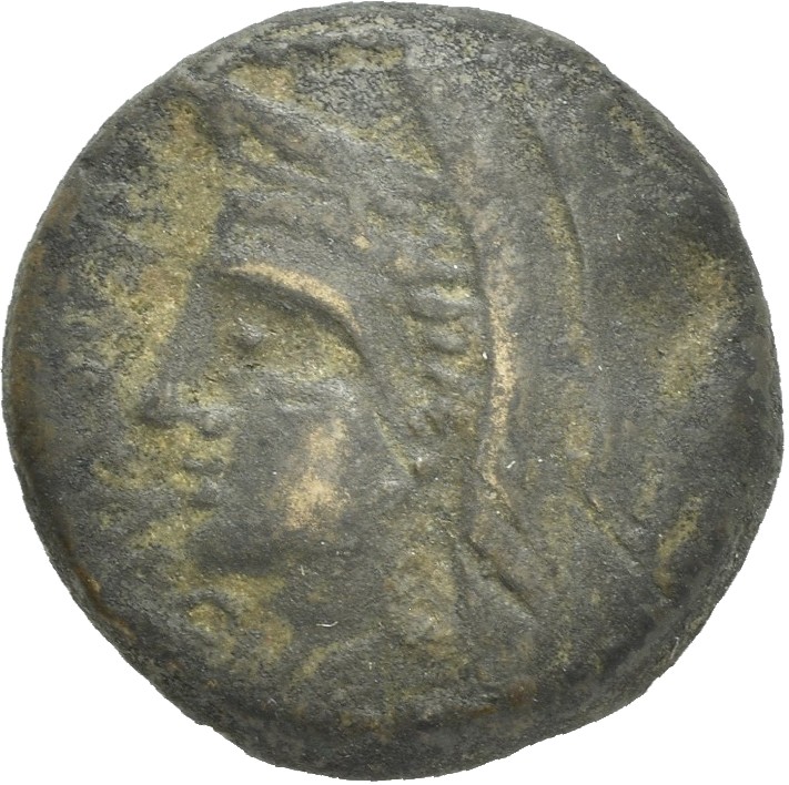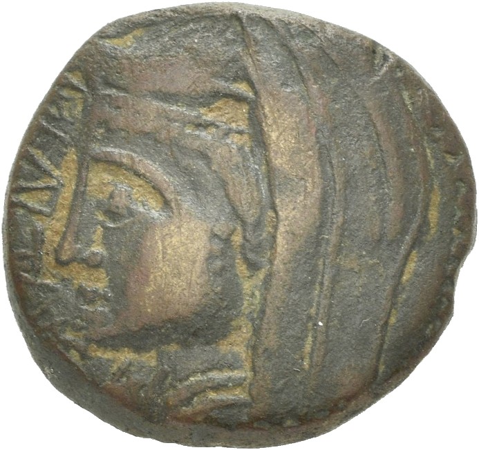 veiled head (Astarte?) with stephane, left
