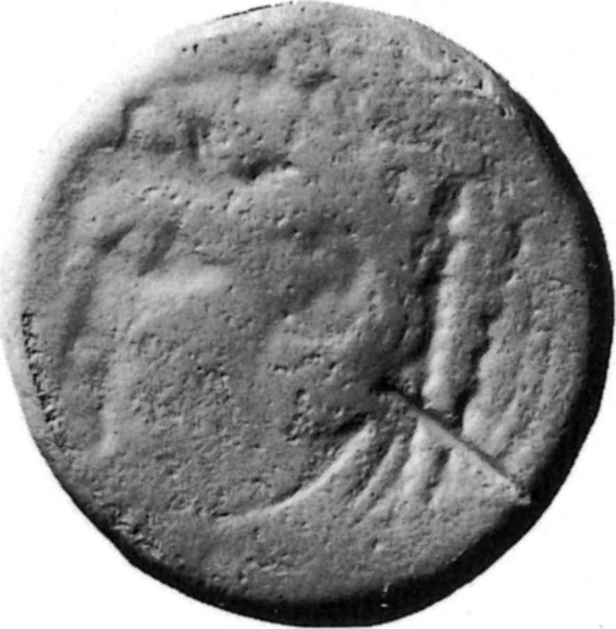head of Hercules in lionskin, left; club across neck
