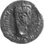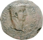 bare head of Tiberius, right |