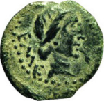 On the rev. CAES, but the letter S seems added, given that it is the same die as coin number 10, from the MNAR Mérida.