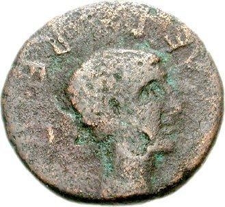 bare head of Tiberius (?), right |