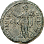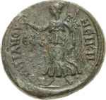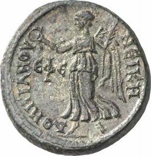 There is a very strange looking coin in Berlin (B-I, 27 mm, 14.21 g) with same obverse and similar reverse design, but accompanied by the legend ΕΦΕ ΝΕΙΚΗ ΔΟΜΙΤΙΑΝΟΥ: note the different form of E and the way that the abbreviated name of the city is incorporated in the inscription around the design, rather than being in the field, as usual. In addition Nike's raised hand is empty. It looks as if it has been very much altered, but it is hard to explain the large flan, unless perhaps it has been completely remade from something else.