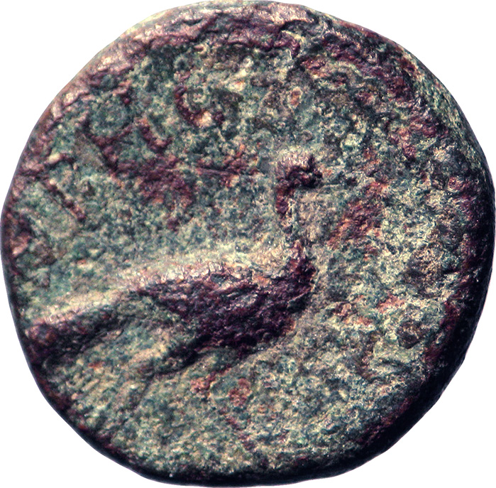 Ankaios standing, left, holding patera and sceptre