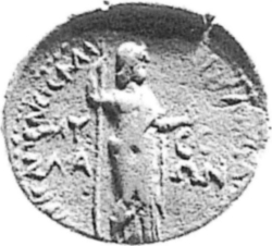 Zeus standing, right, holding sceptre and eagle |